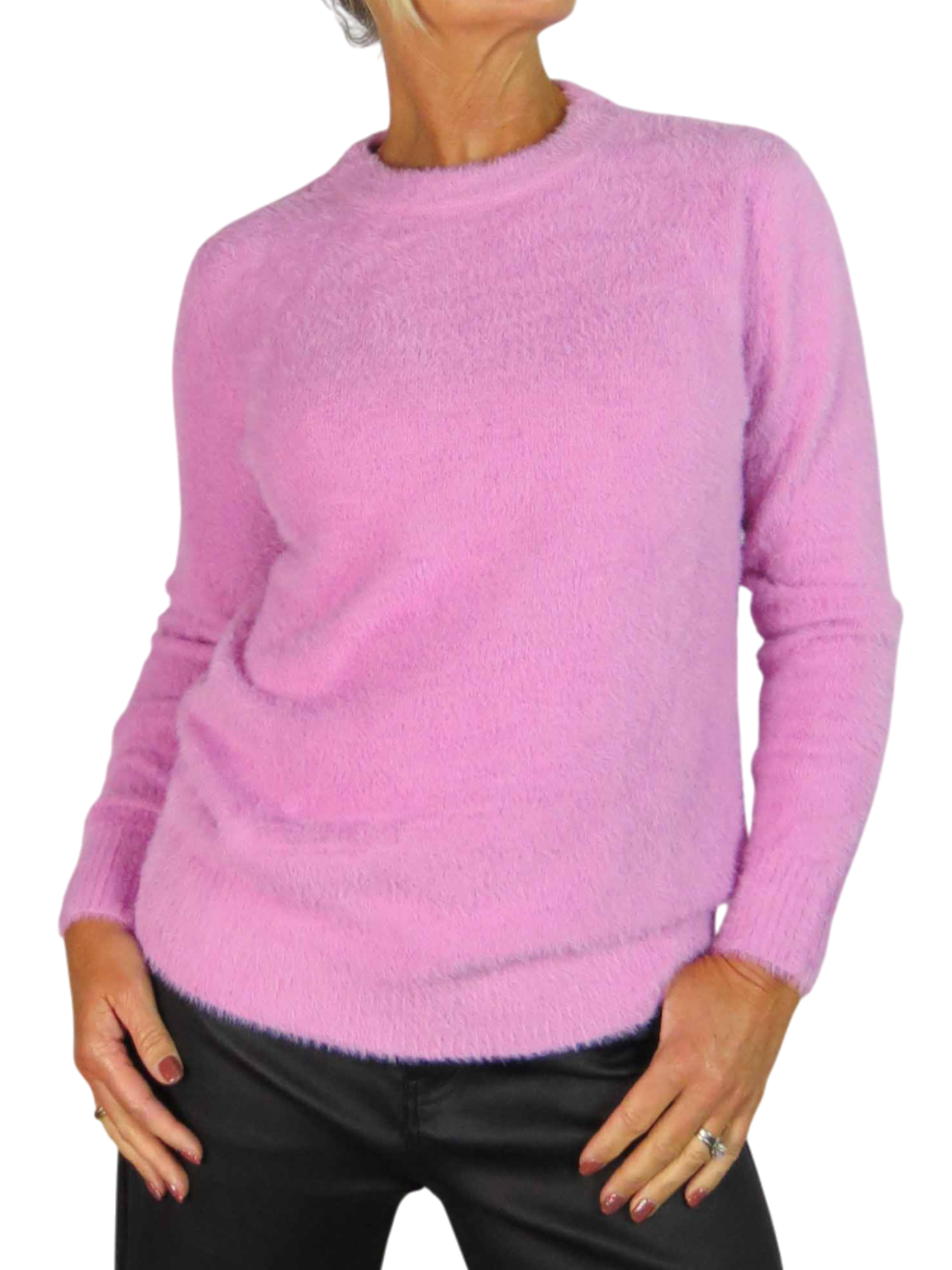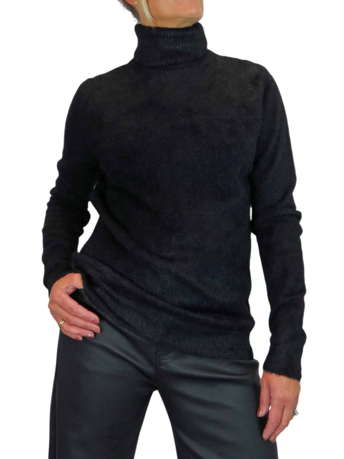 Long Sleeve Roll Neck Jumper Fluffy Knit Black