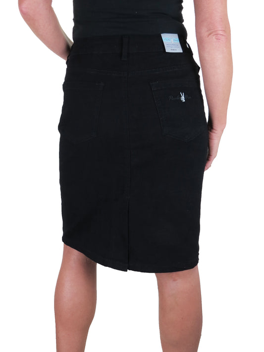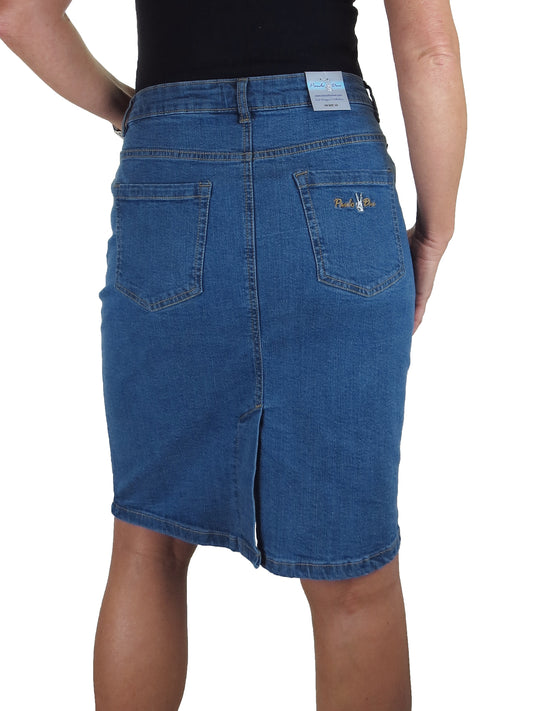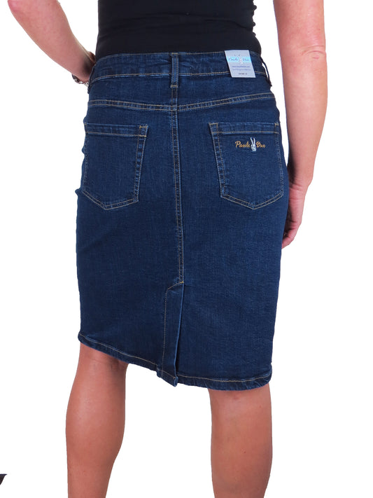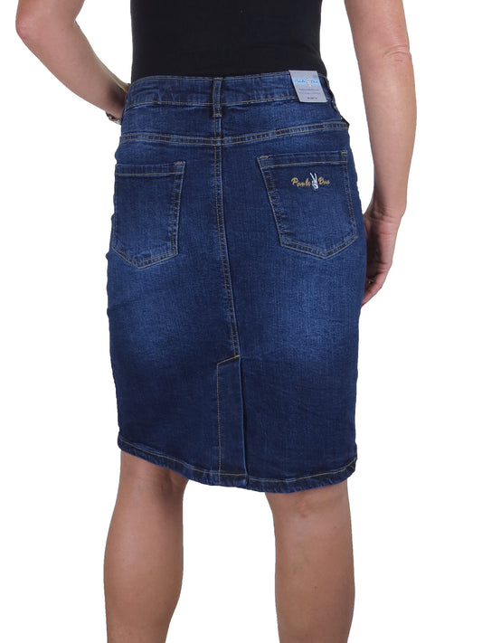 Knee Length Stretch Denim Pencil Skirt Dark Fade Blue