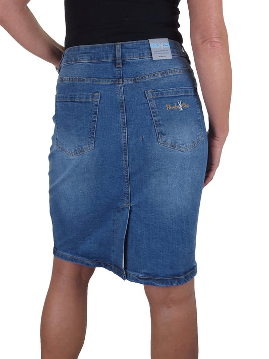 Knee Length Stretch Denim Pencil Skirt Fade Mid Blue