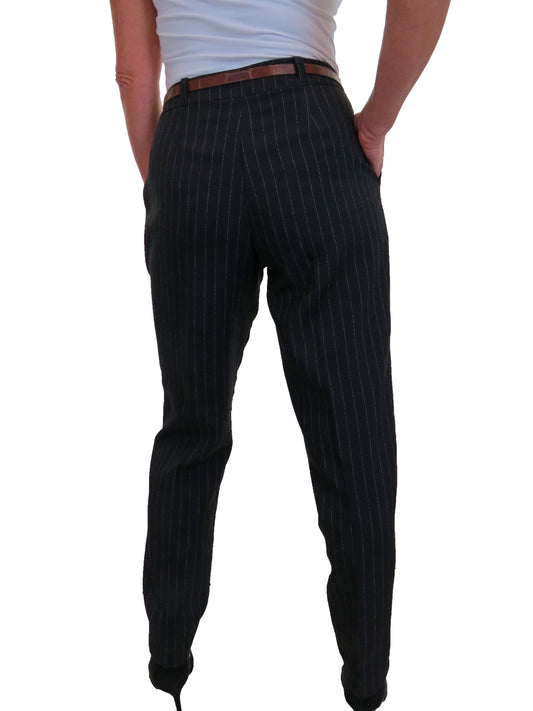 Ladies Smart Tapered Leg Trousers Pinstripe Black