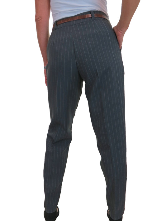 Ladies Smart Tapered Leg Trousers Pinstripe Grey