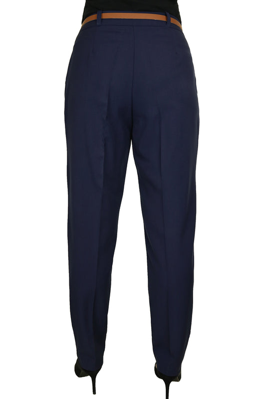 Ladies Smart Tapered Leg Trousers Navy Blue