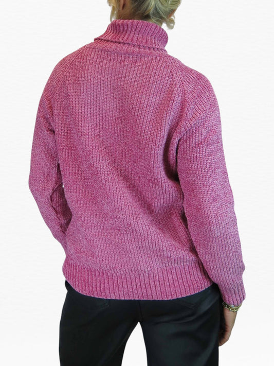 Long Sleeve Chenille Roll Neck Jumper Pink