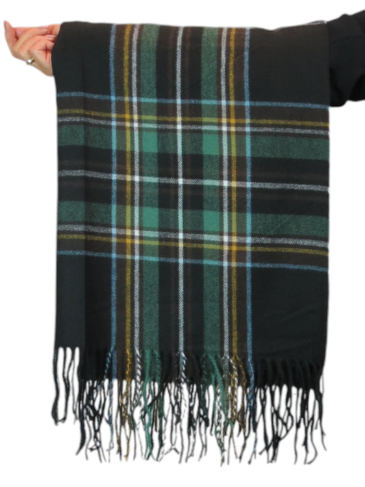 Plaid Tartan Soft Wool Pashmina Shawl Scarf Black