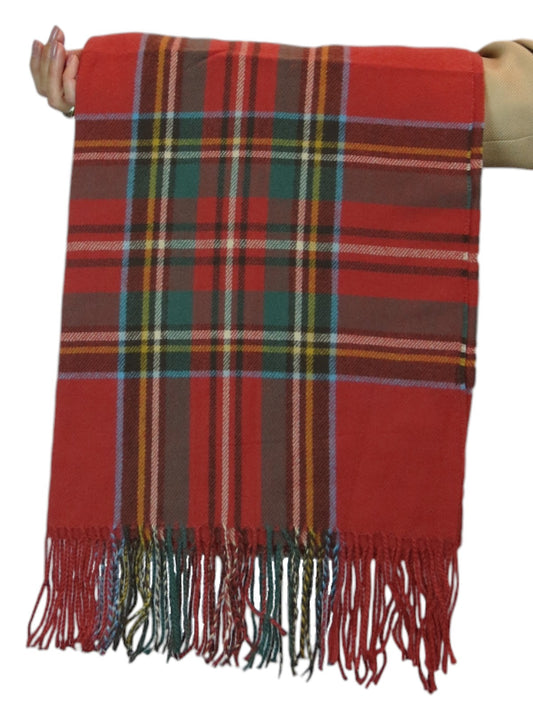 Plaid Tartan Soft Wool Pashmina Shawl Scarf Rusty Red