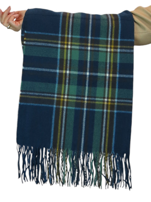 Plaid Tartan Soft Wool Pashmina Shawl Scarf Navy Blue