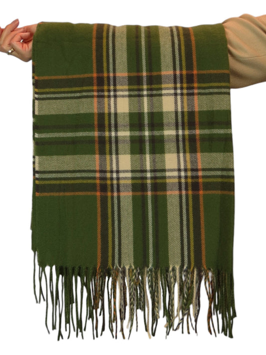 Plaid Tartan Soft Wool Pashmina Shawl Scarf Khaki Green