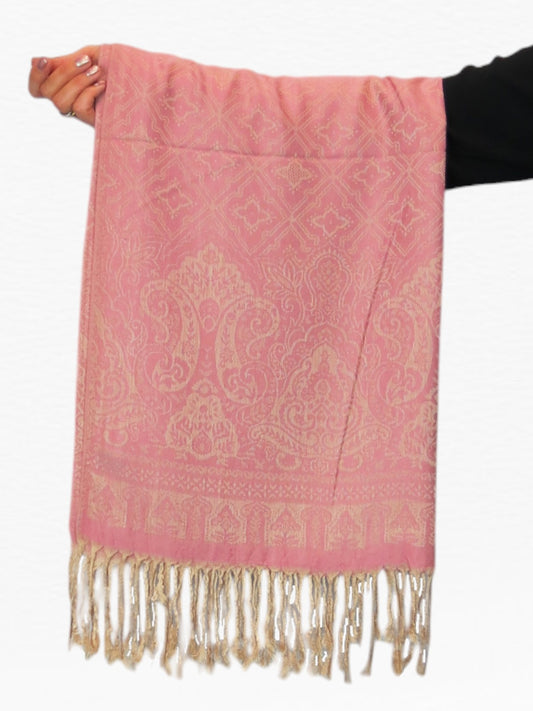 Persian Jacquard Design Pashmina Shawl Wrap Pink