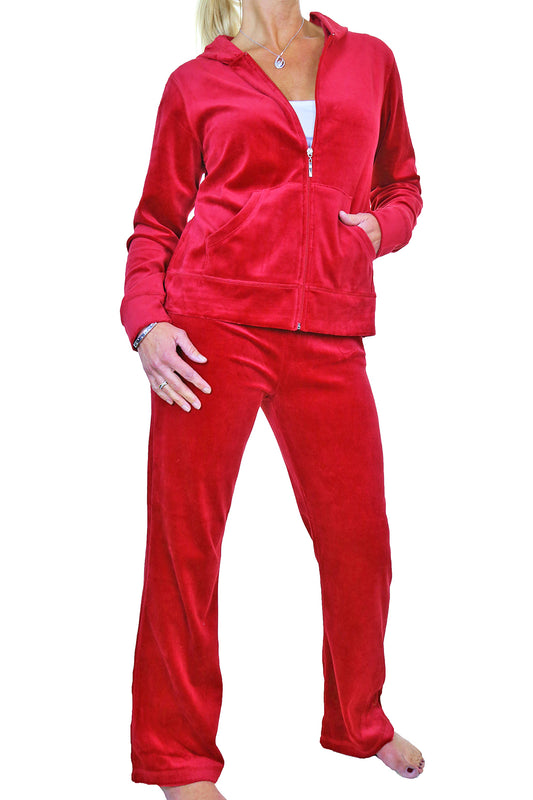 Plus Size Luxury Velour Tracksuit Bright Red