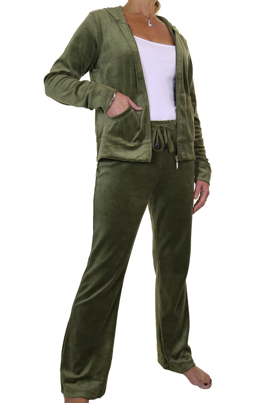 Plus Size Luxury Velour Tracksuit Olive Green