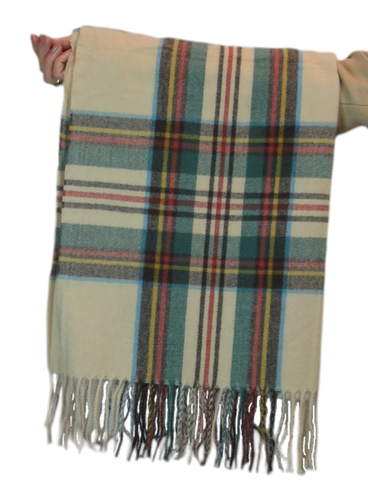 Plaid Tartan Soft Wool Pashmina Shawl Scarf Beige