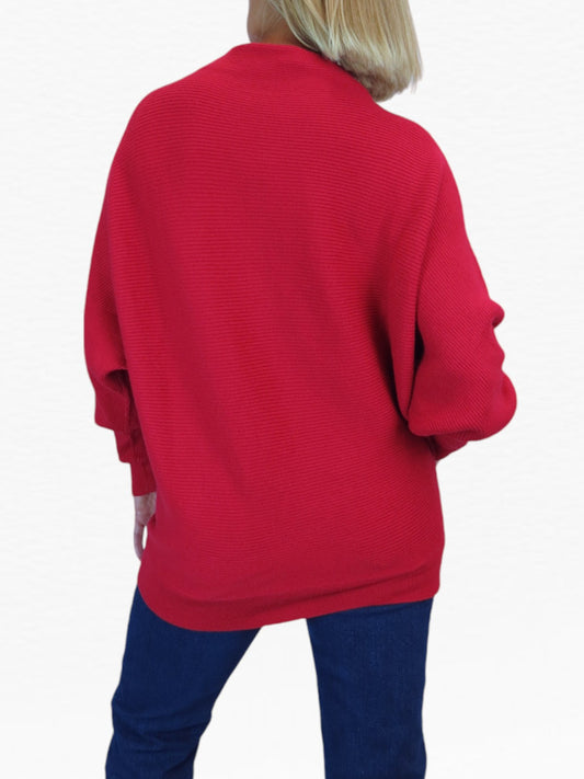 Ribbed Turtle Neck Batwing Jumper Burgundy