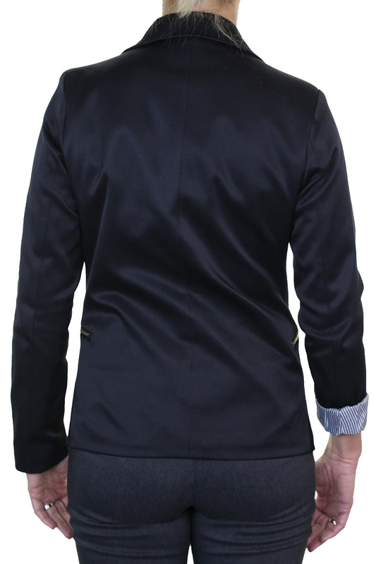Smart Lined Evening Blazer Jacket With Sateen Sheen Black