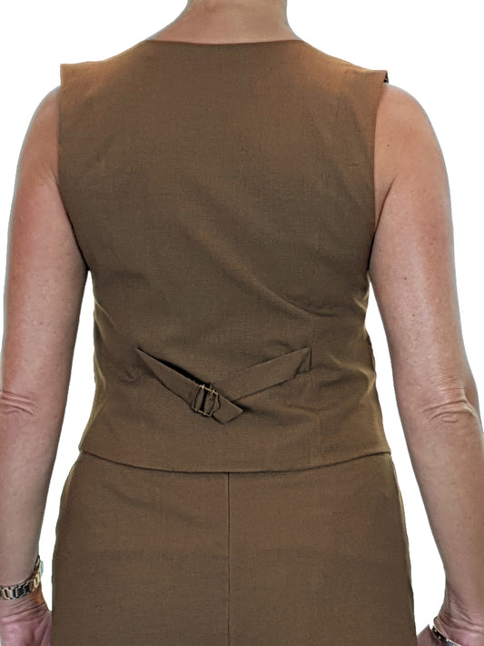 Smart Detailed Office Waistcoat Skirt Suit Brown