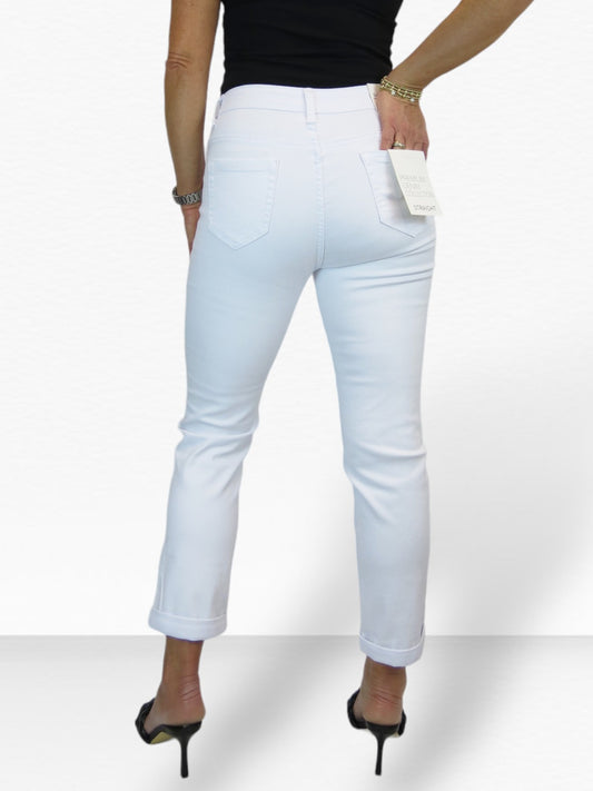 Women's Ankle Length Turn Up Straight Leg Denim Jeans White