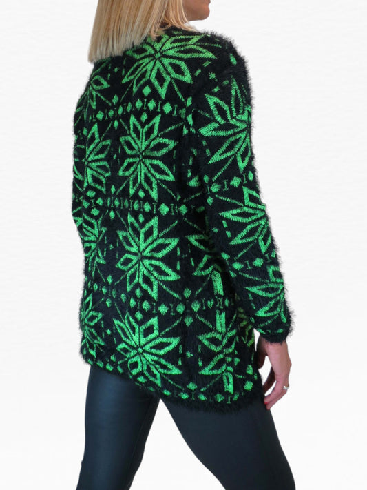 Women's Christmas Snowflake Fluffy Knit Jumper Green