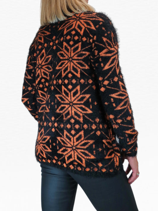Women's Christmas Snowflake Fluffy Knit Jumper Orange