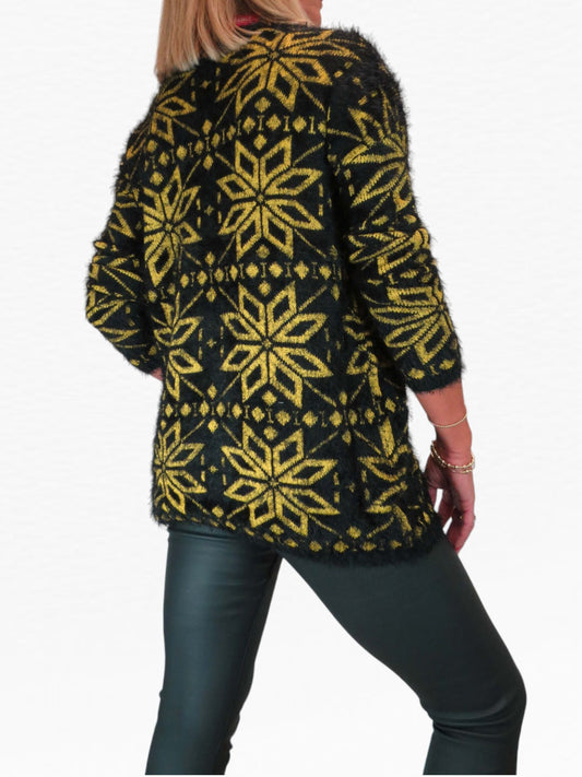 Women's Christmas Snowflake Fluffy Knit Jumper Lemon Yellow