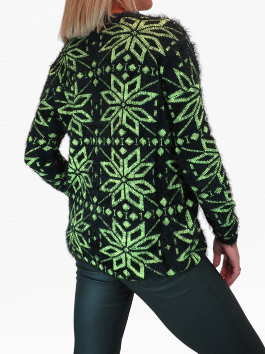 Women's Christmas Snowflake Fluffy Knit Jumper Lime Green