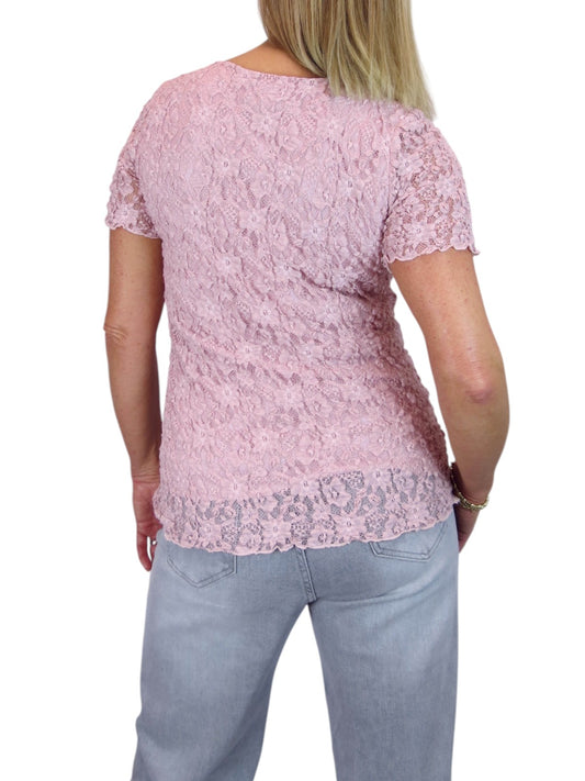 Women's Short Sleeve Stretch Crochet Lace Top Dusty Pink
