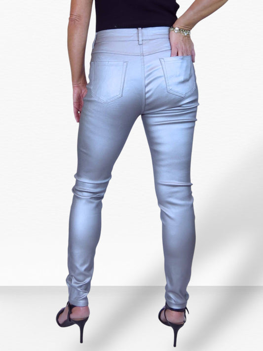 Womens High Waist Stretch Leather Look Jeans Pewter