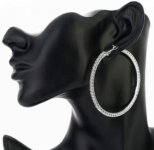 Diamante Hoop Earrings 6cm and 7cm Silver 6cm