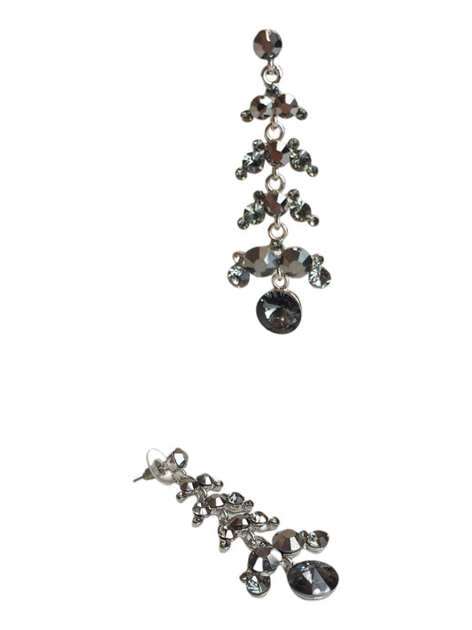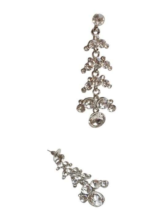 Diamante Earrings 3 Hanging Hoops Pierced Ears Silver