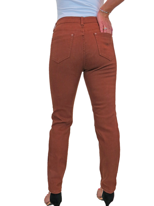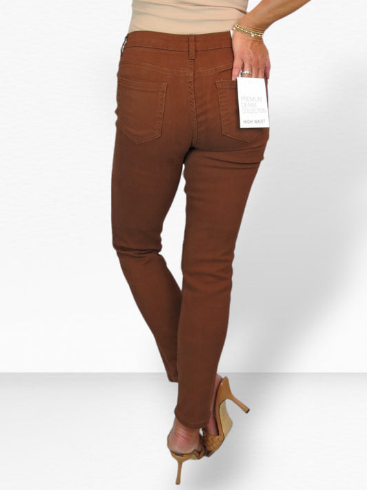 Womens High Waist Stretch Denim Jeans Brown (Rust)