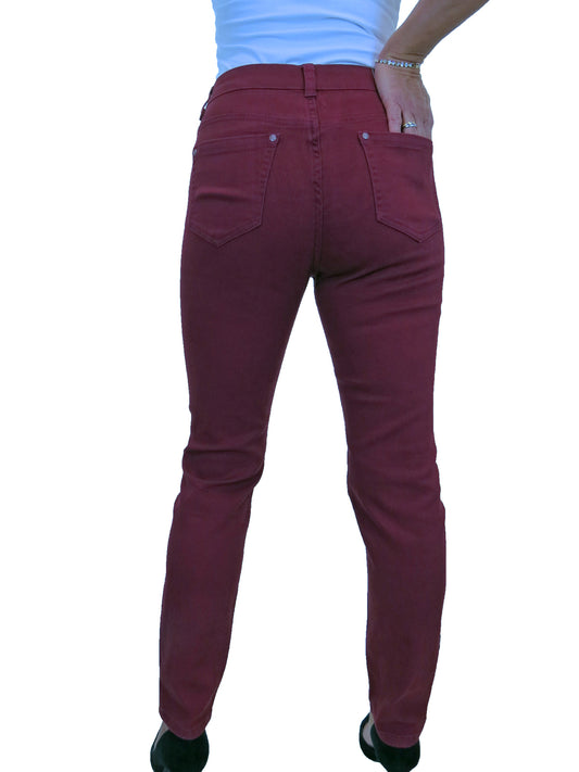 Womens High Waist Stretch Denim Jeans Bordeaux Red