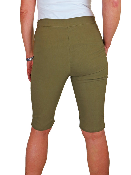 Womens High Waist Skinny Stretch Pedal Pusher Style Summer Shorts Khaki Green