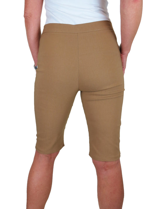 Womens High Waist Skinny Stretch Pedal Pusher Style Summer Shorts Camel Beige