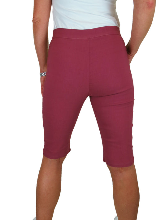 Womens High Waist Skinny Stretch Pedal Pusher Style Summer Shorts Deep Rose