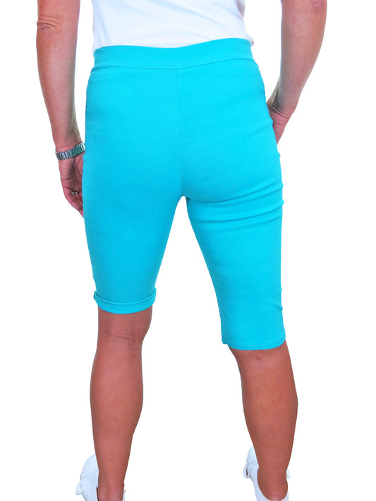 Womens High Waist Skinny Stretch Pedal Pusher Style Summer Shorts Turquoise Blue