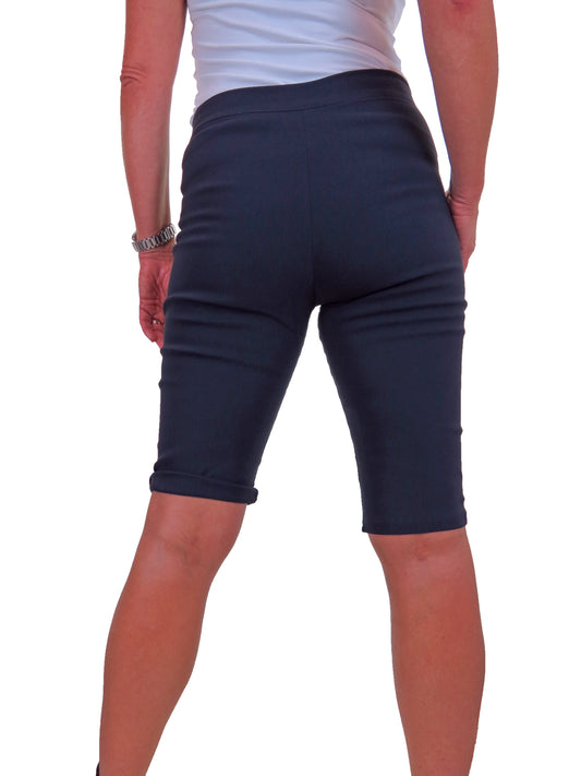 Womens High Waist Skinny Stretch Pedal Pusher Style Summer Shorts Navy Blue