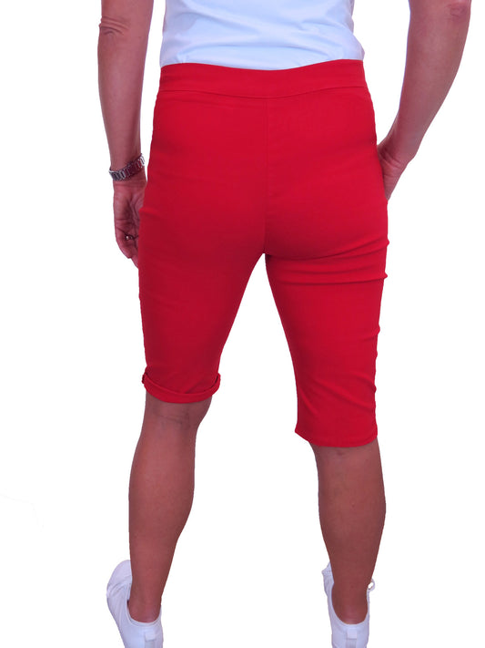 Womens High Waist Skinny Stretch Pedal Pusher Style Summer Shorts Red