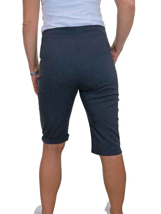 Womens High Waist Skinny Stretch Pedal Pusher Style Summer Shorts Marl Grey