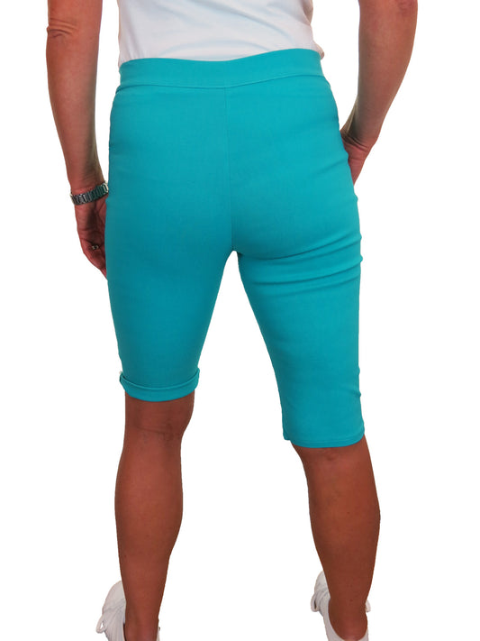 Womens High Waist Skinny Stretch Pedal Pusher Style Summer Shorts Teal Green