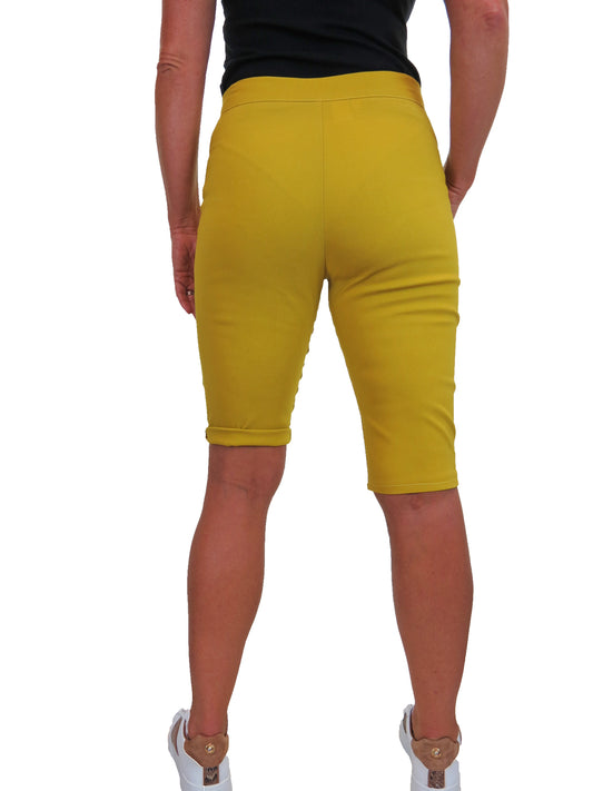 Womens High Waist Skinny Stretch Pedal Pusher Style Summer Shorts Mustard Yellow