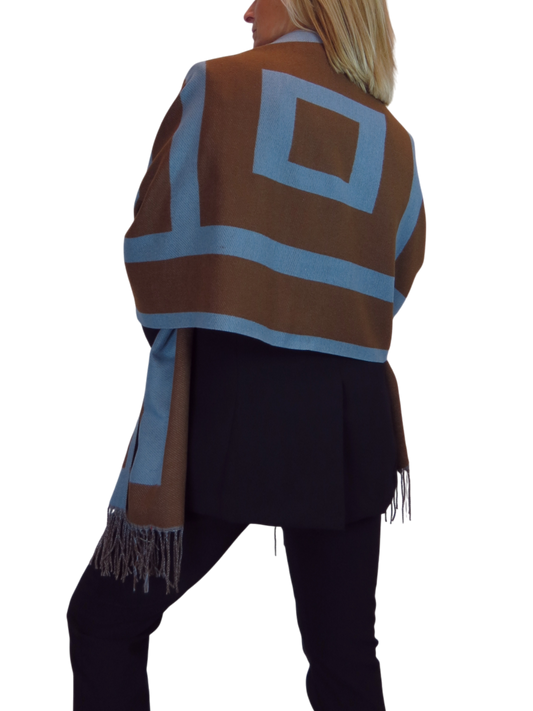 Wool Blend Geometric Design Scarf Brown/Blue
