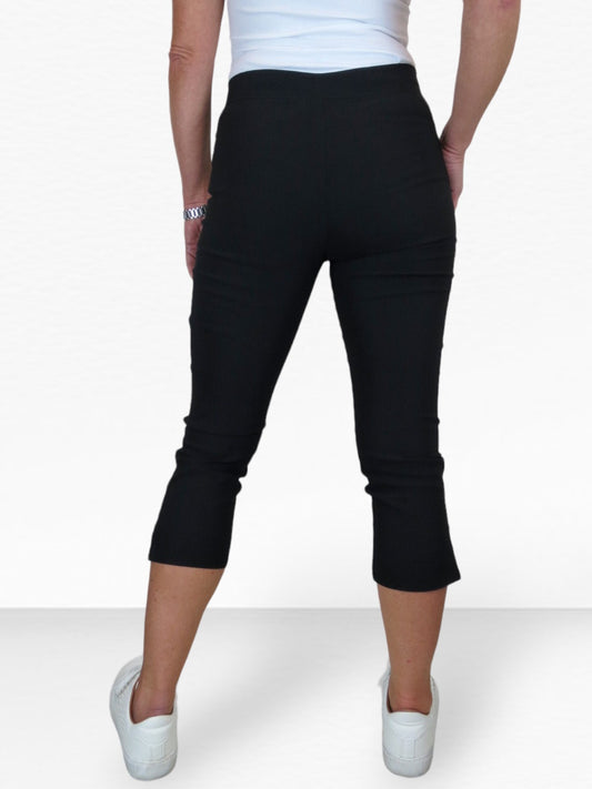 High Waisted Cropped Skinny Pedal Pushers Trousers Black