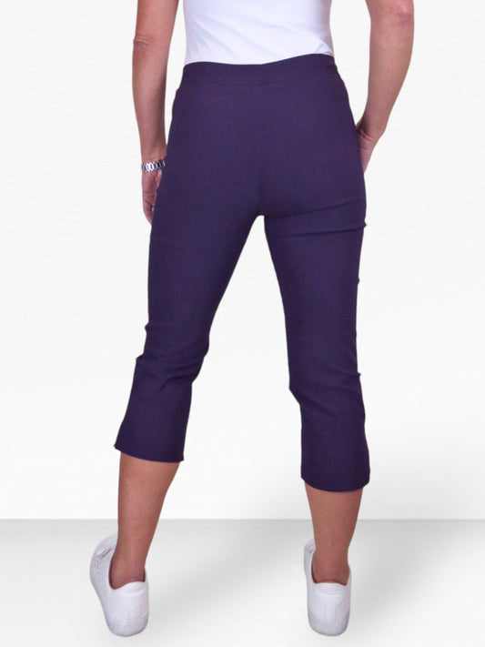 High Waisted Cropped Skinny Pedal Pushers Trousers Aubergine Purple