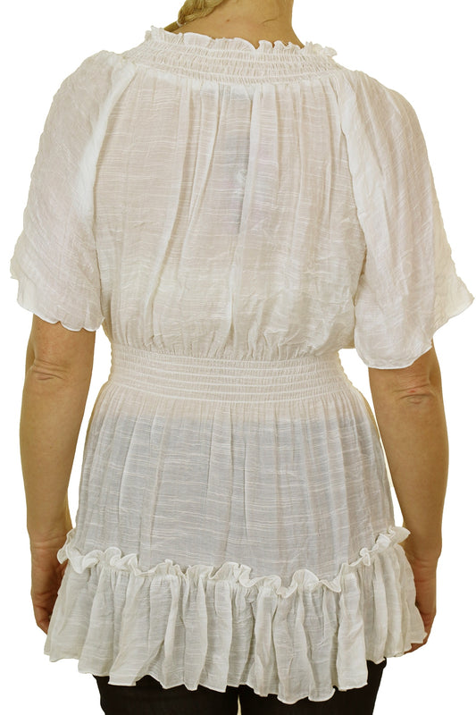 Gypsy Tunic Top Textured Sheen Fabric Cream