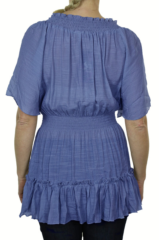 Gypsy Tunic Top Textured Sheen Fabric Blue