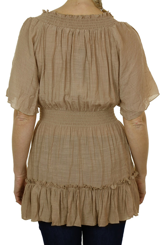 Gypsy Tunic Top Textured Sheen Fabric Beige