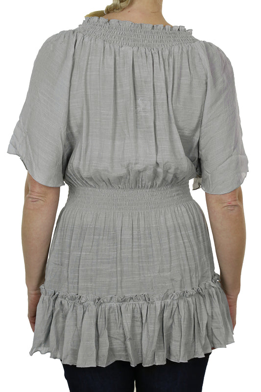 Gypsy Tunic Top Textured Sheen Fabric Grey
