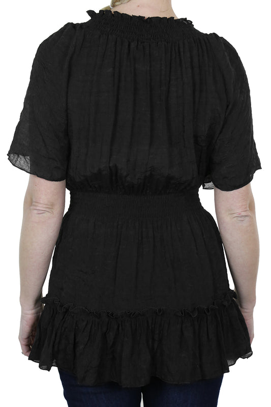 Gypsy Tunic Top Textured Sheen Fabric Black