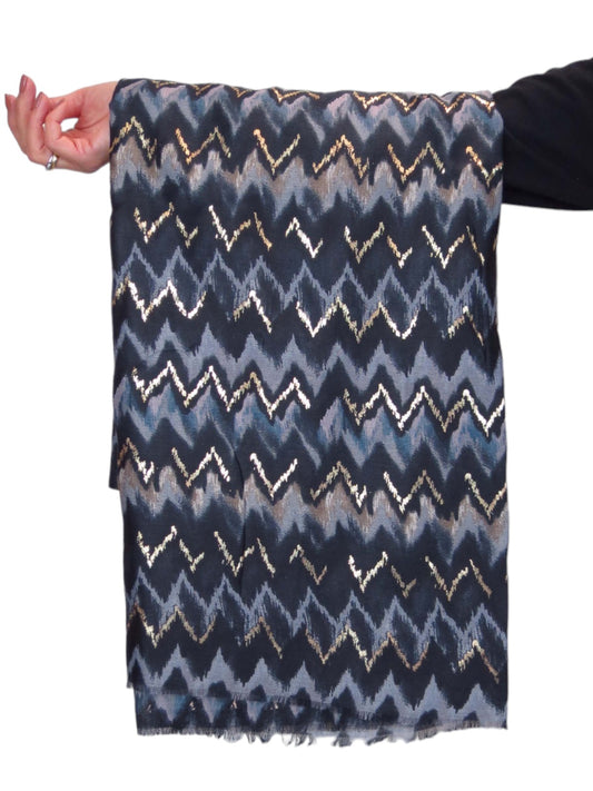 Golden Wave Design Fashion Scarf Oversized Scarves Black