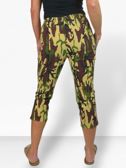 Women's Pull On Elasticated Waist Cropped Trousers Camo