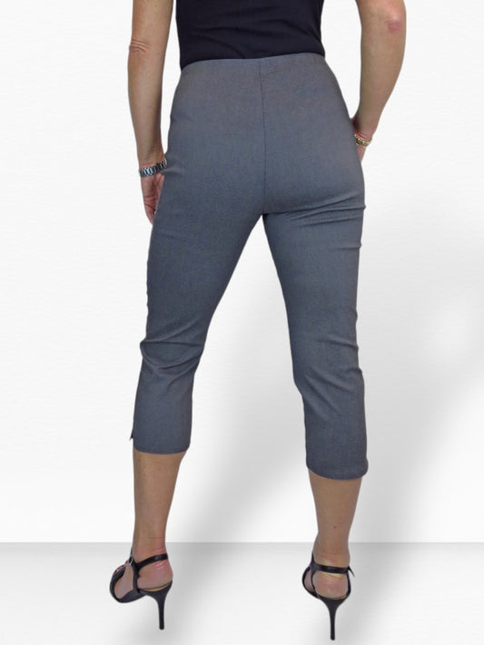 Women's Pull On Elasticated Waist Cropped Trousers Marl Grey