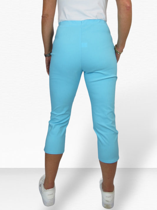 Women's Pull On Elasticated Waist Cropped Trousers Turquoise